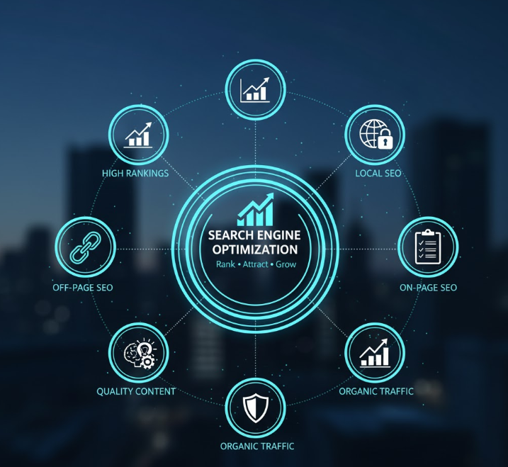 Search Engine Optimization (SEO) is the foundation of a strong digital presence. As a skilled Digital Marketing Strategist in Calicut, I focus on building SEO strategies that help your business rank higher on Google and attract the right audience. SEO is not just about adding keywords — it’s about optimizing your entire website for better user experience, faster loading, and high-quality content that meets Google’s standards. From on-page and off-page SEO to technical optimization and local SEO, every step is designed to improve your online visibility and credibility. With a data-driven approach, I ensure your website earns long-term traffic, builds trust with customers, and turns visitors into loyal clients. A well-executed SEO strategy is your key to staying ahead of competitors and growing your business organically.
